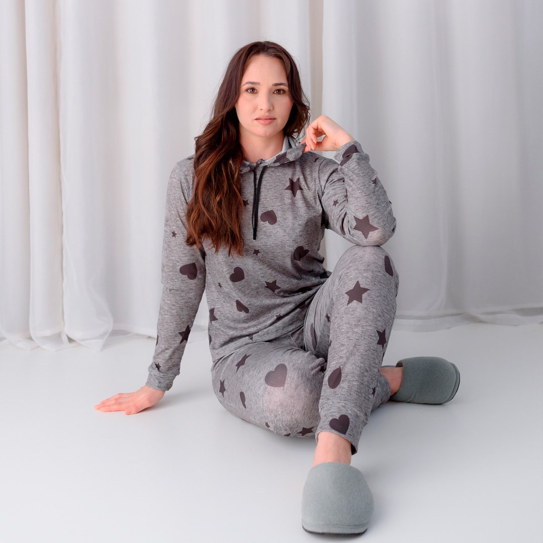 Esse pijama é a definição de aconchego com estilo. Confeccionado em tecido macio e agradável ao toque, ele envolve o corpo com conforto na medida certa, perfeito para noites tranquilas e momentos relax em casa.
