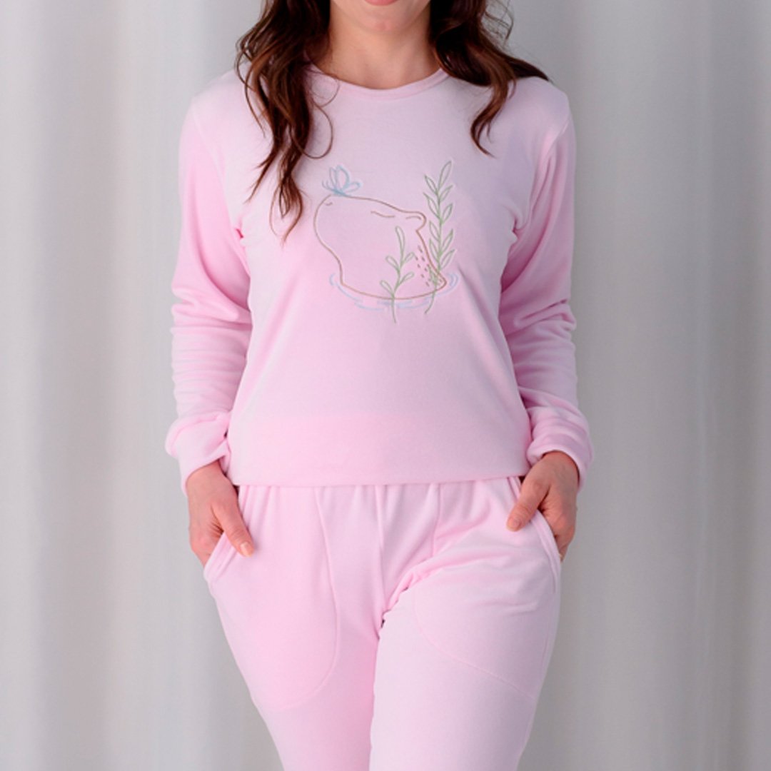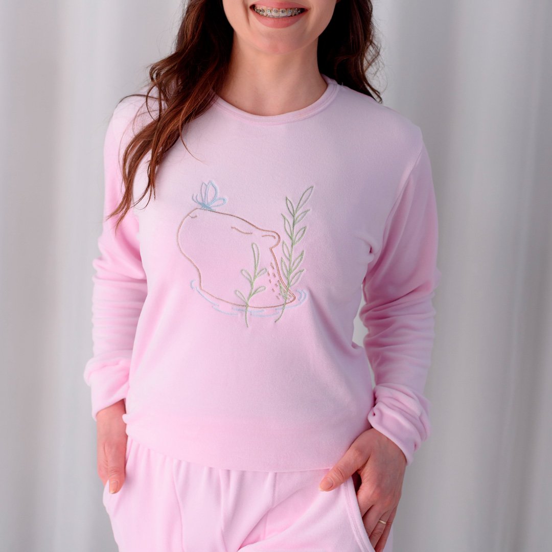 Um pijama pensado para quem ama se sentir aquecida, confortável e linda até na hora de descansar.