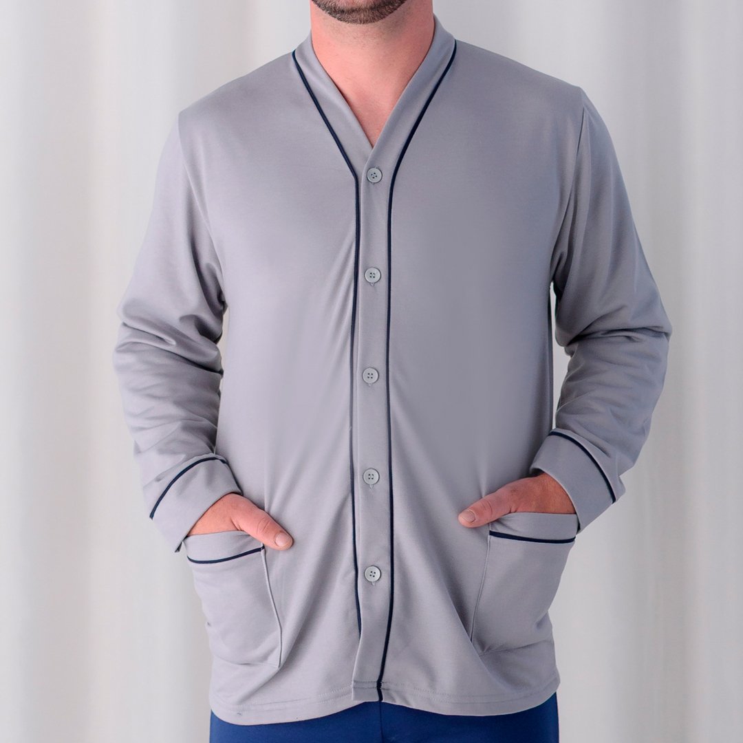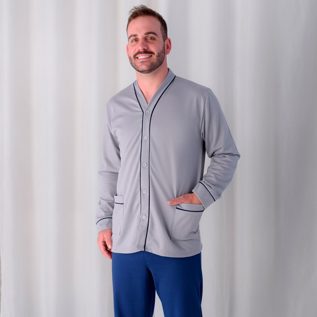 Esse pijama masculino em pluminha aveludada é perfeito para quem busca máximo conforto com um toque de sofisticação. A blusa de manga longa com abertura frontal em botões traz um visual clássico e elegante, além de bolsos funcionais que agregam praticidade ao dia a dia. O acabamento em contraste valoriza os detalhes e deixa a peça ainda mais charmosa.