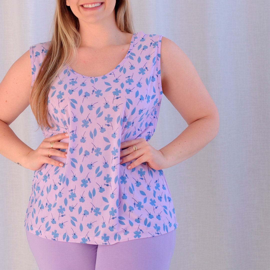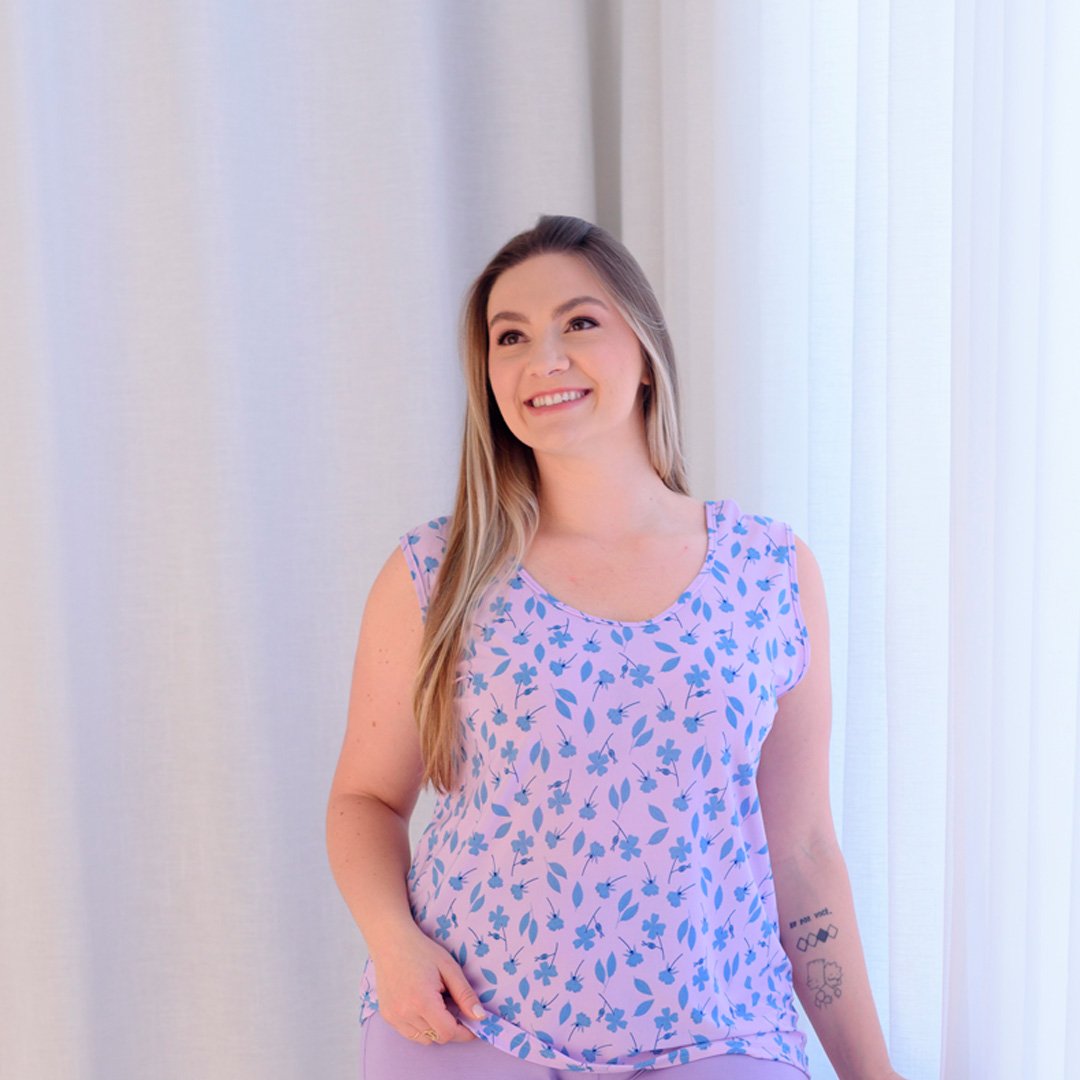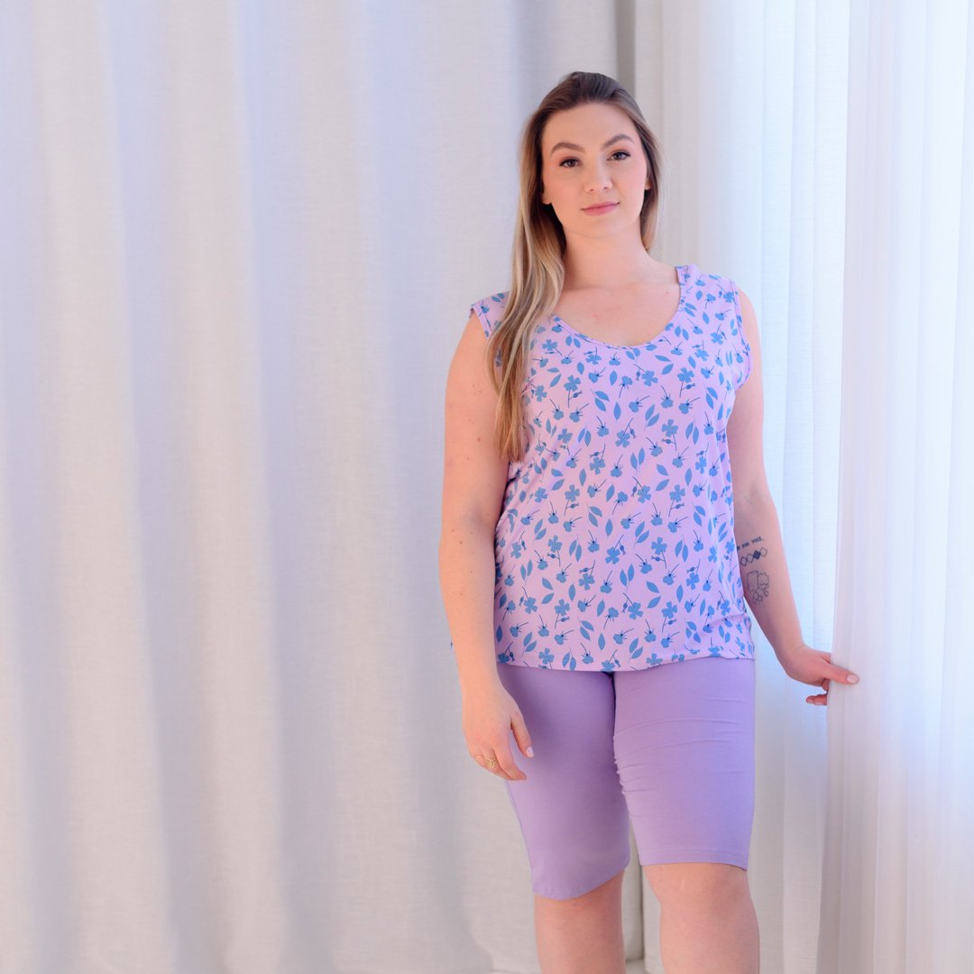 Colorido, leve e cheio de frescor! Esse pijama une a suavidade da poliviscose com um design clássico: blusa regata estampada com folhagens em tons vibrantes e bermuda lisa em comprimento médio, que garante liberdade de movimento e muito conforto.